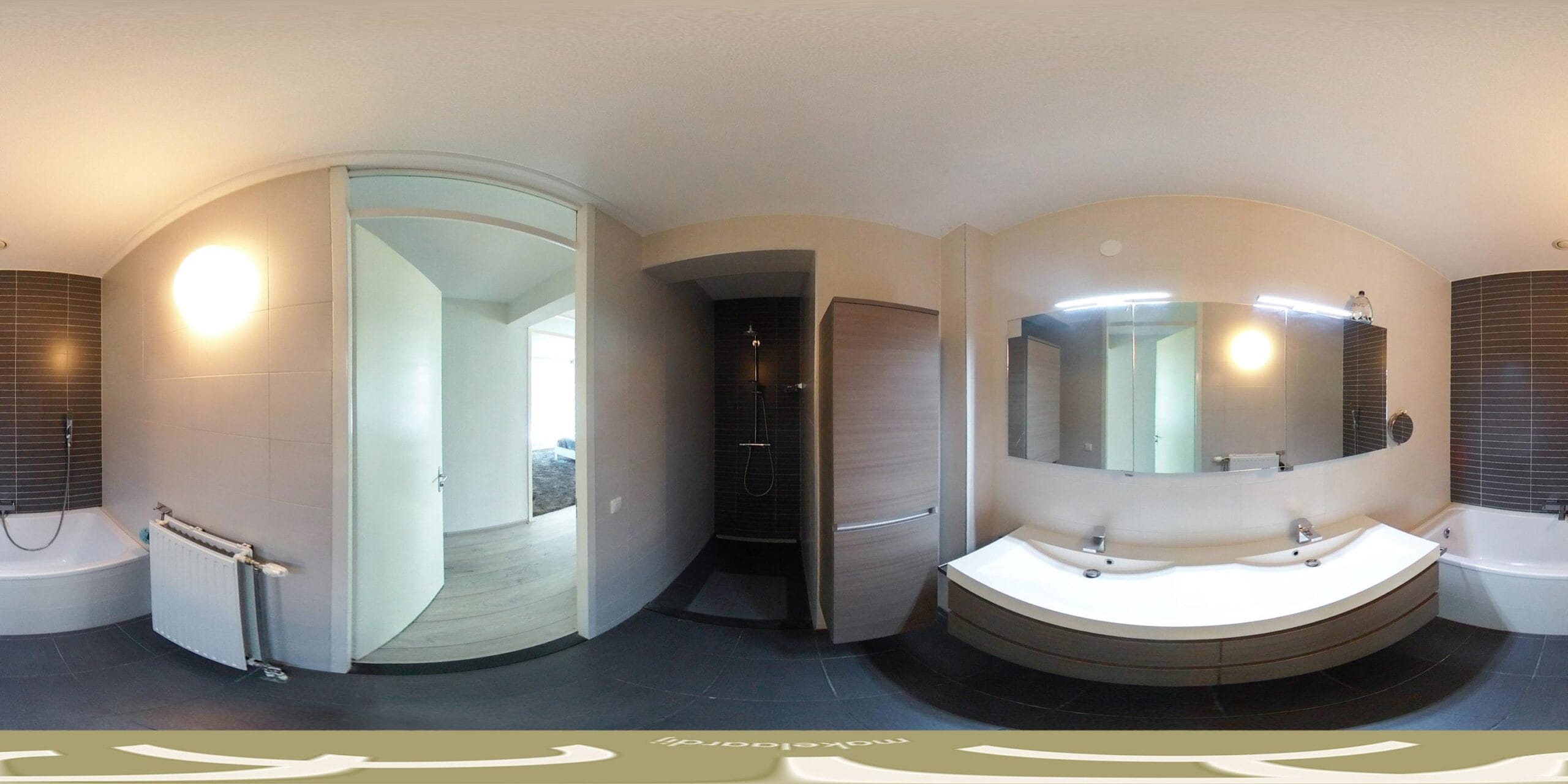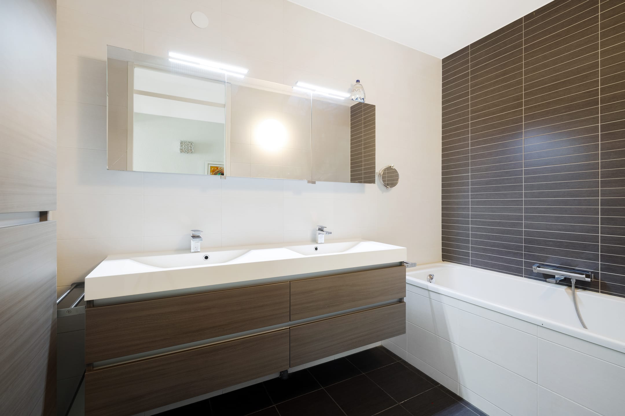 **Moderne badkamer met douche, ligbad én dubbele wastafel