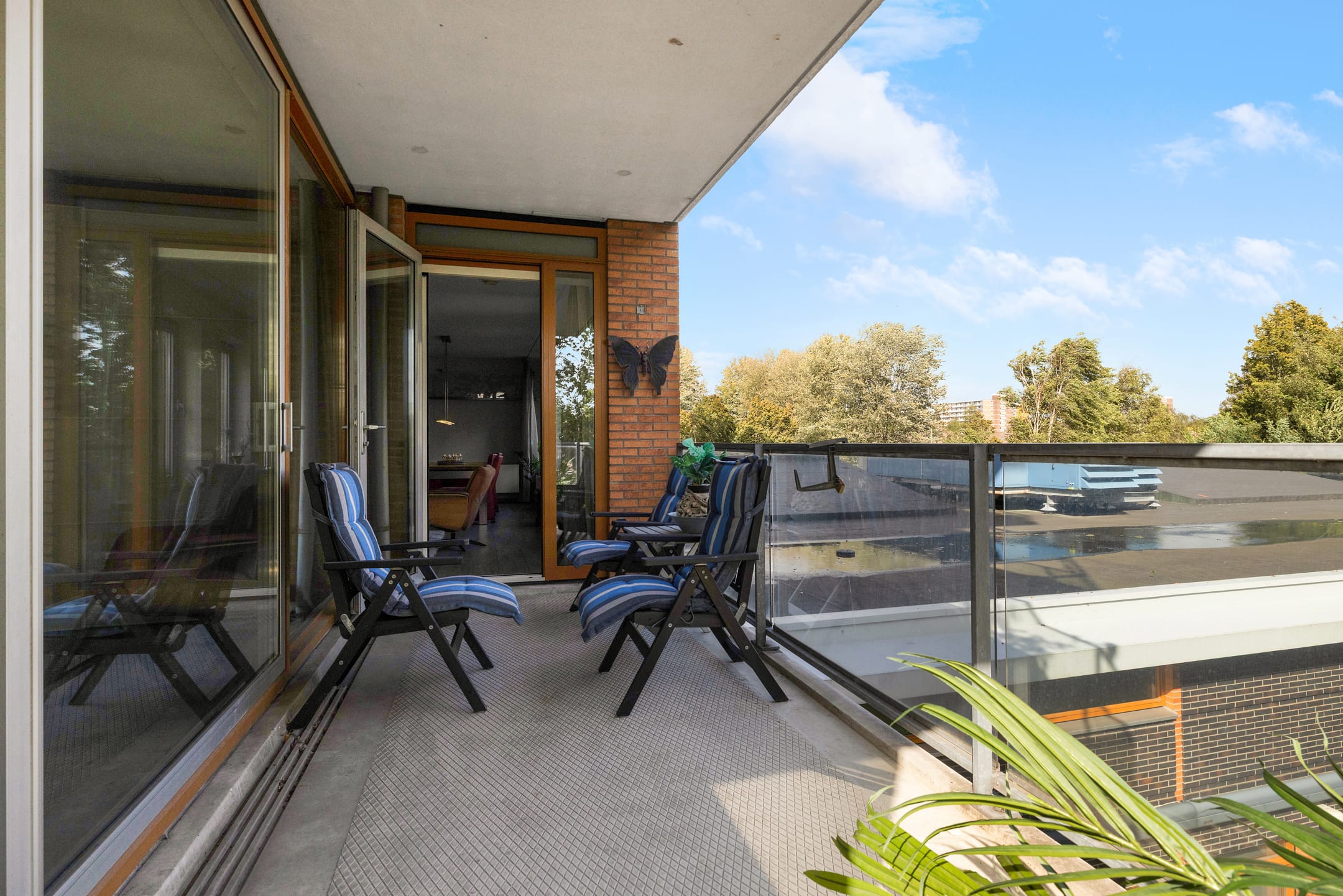 Er zijn twee slaapkamers, waarvan de hoofdslaapkamer via een schuifpui direct toegang geeft tot het terras. De tweede kamer is perfect als werk-, studie- of logeerkamer.