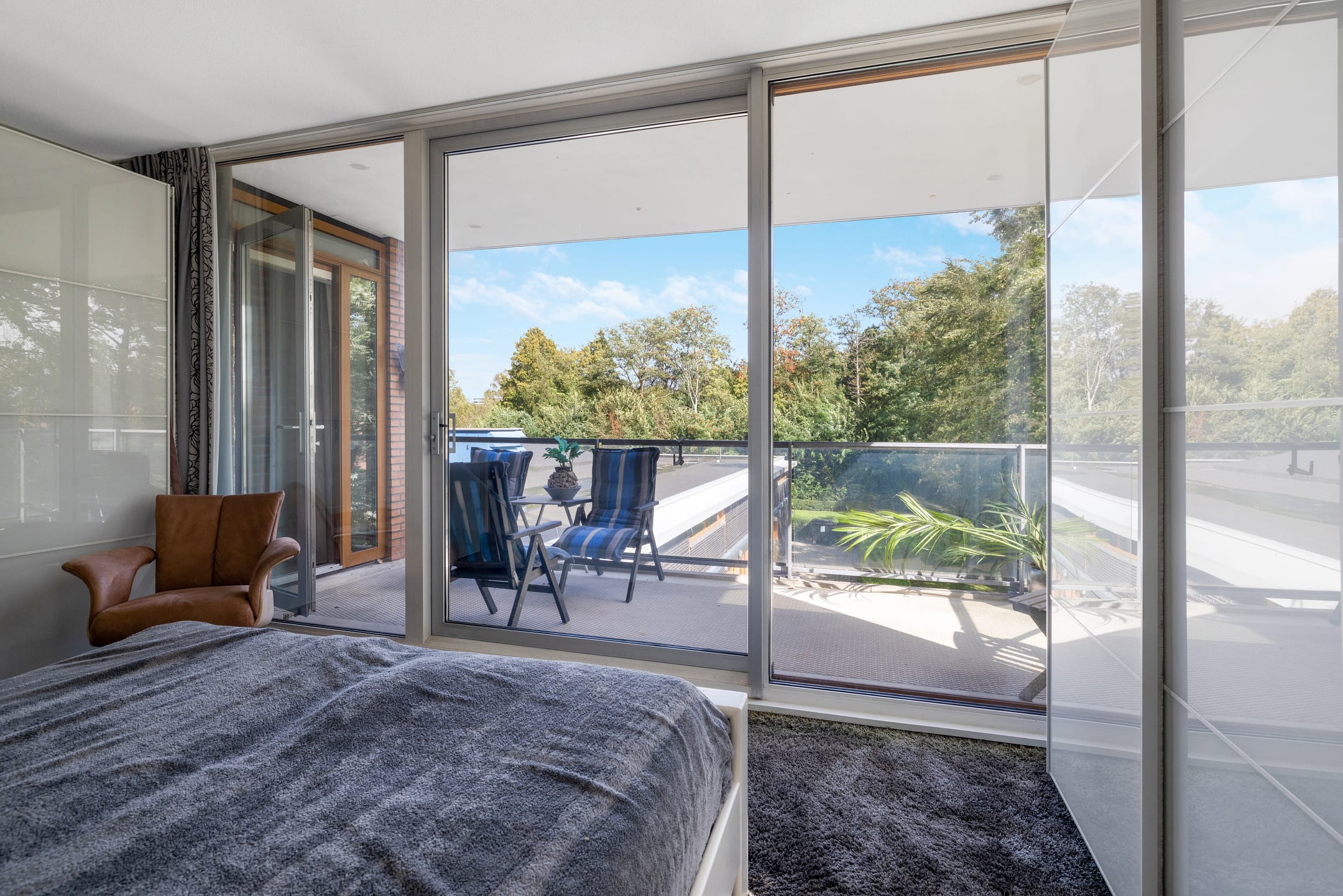 **Hoofdslaapkamer met schuifpui naar het terras