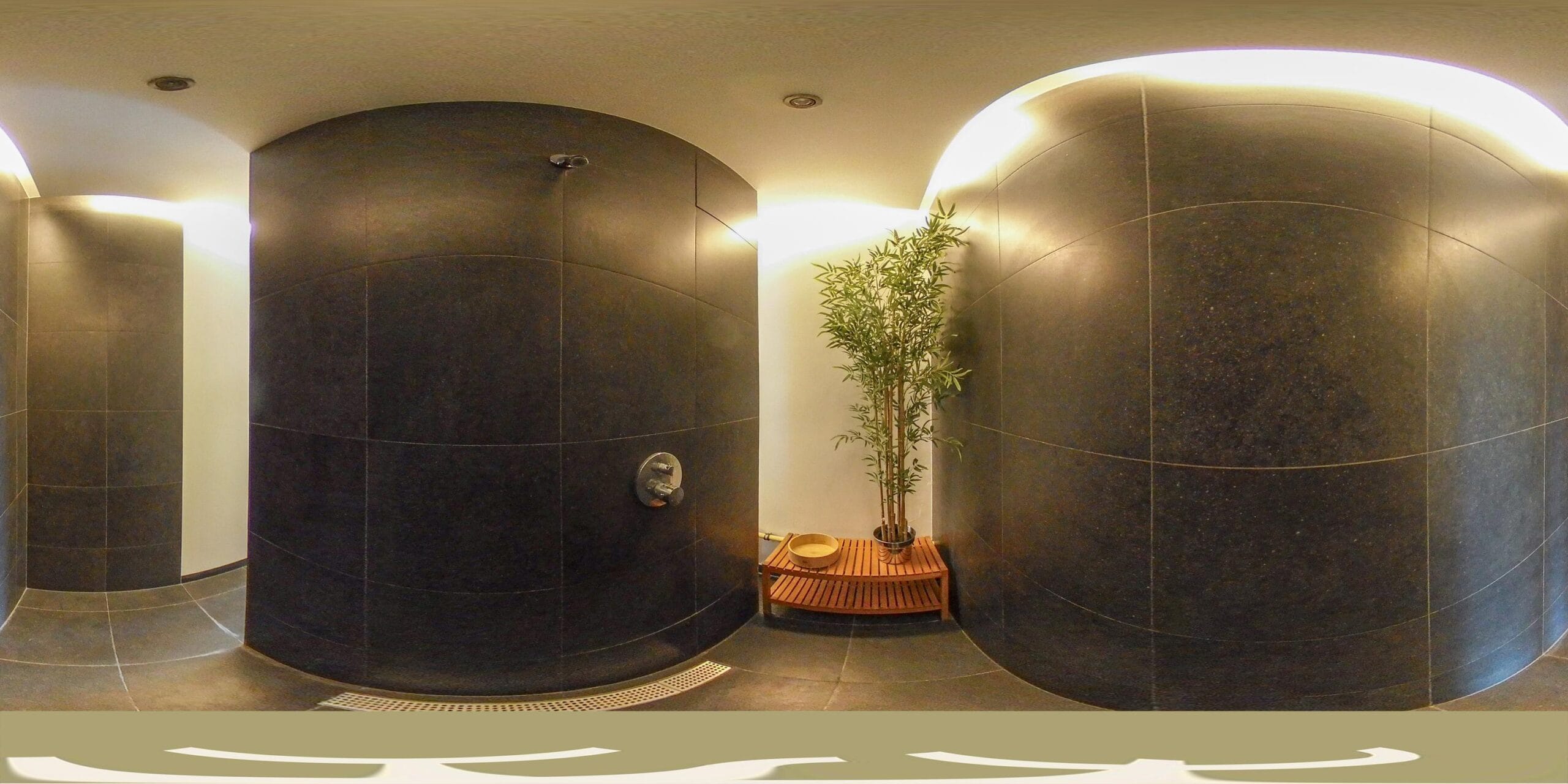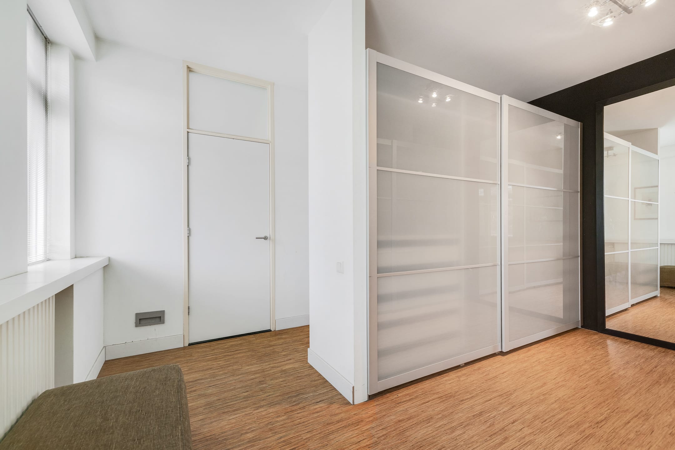De kleedkamer is voorzien van vaste kasten.