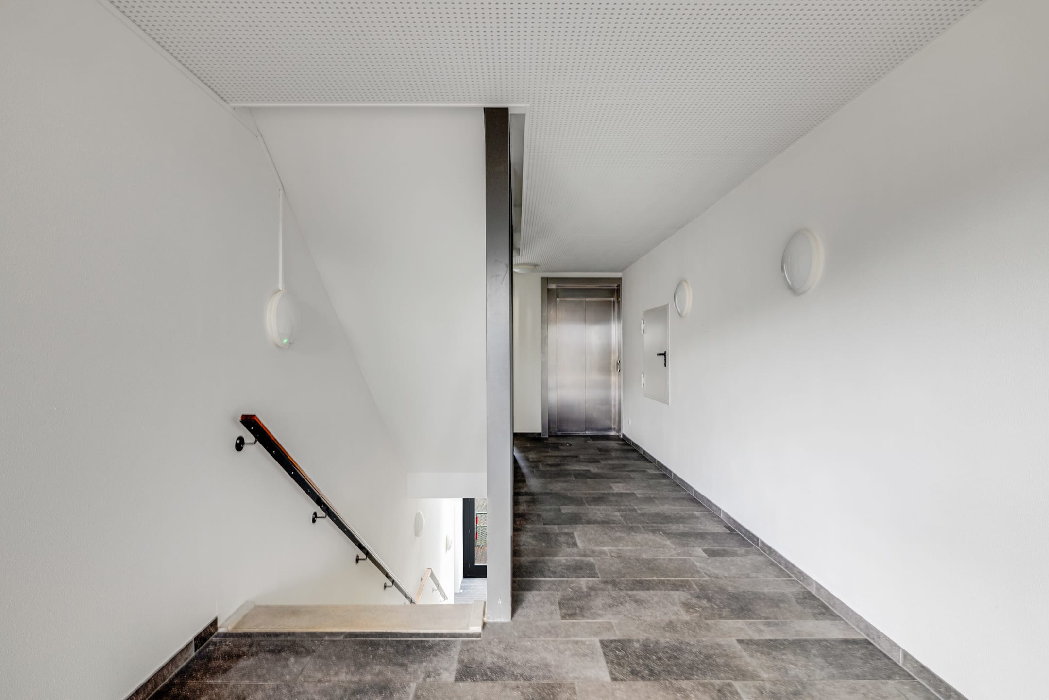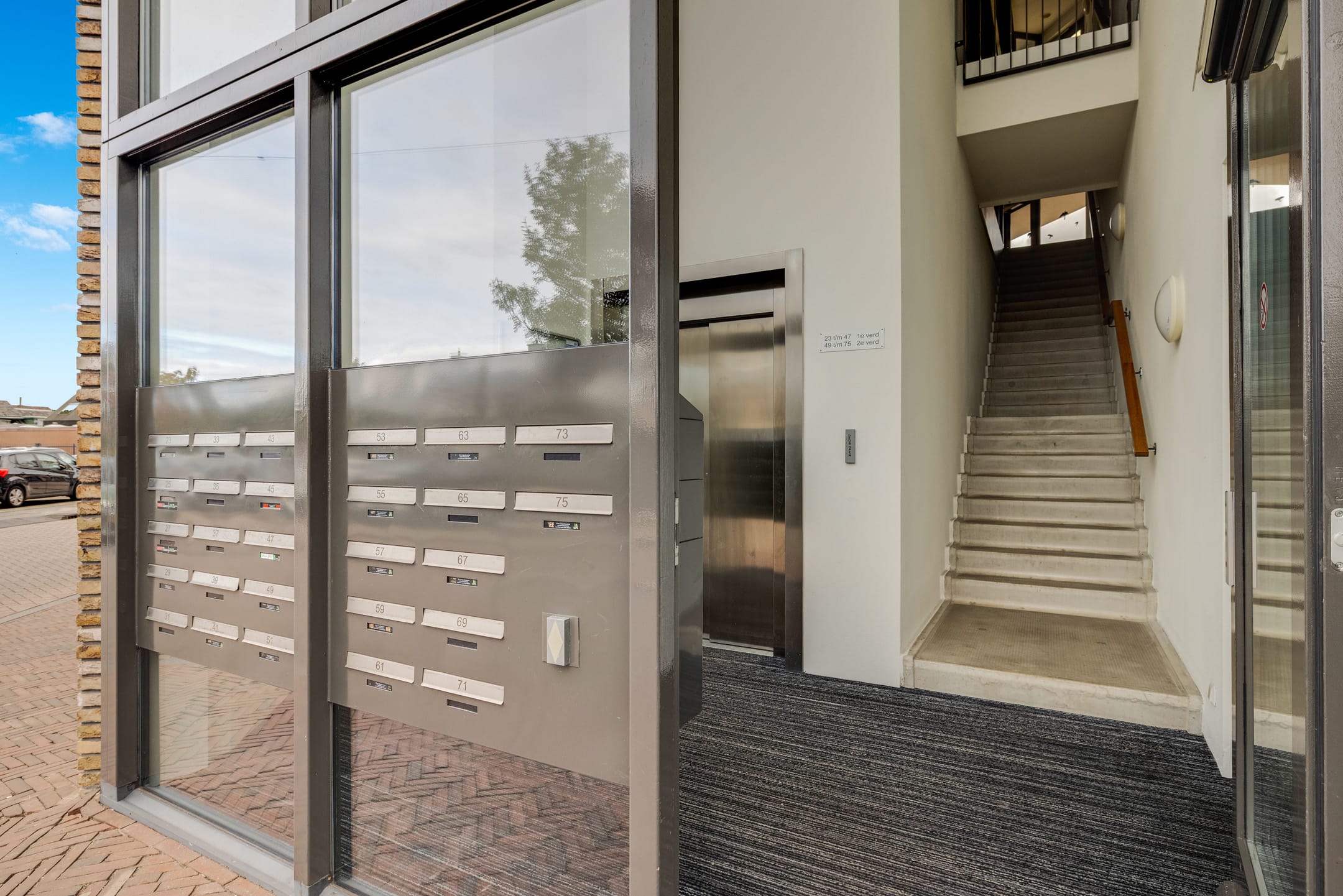 Begane grond: Centrale entree met lift, brievenbussen en bellentableau met videofoon.